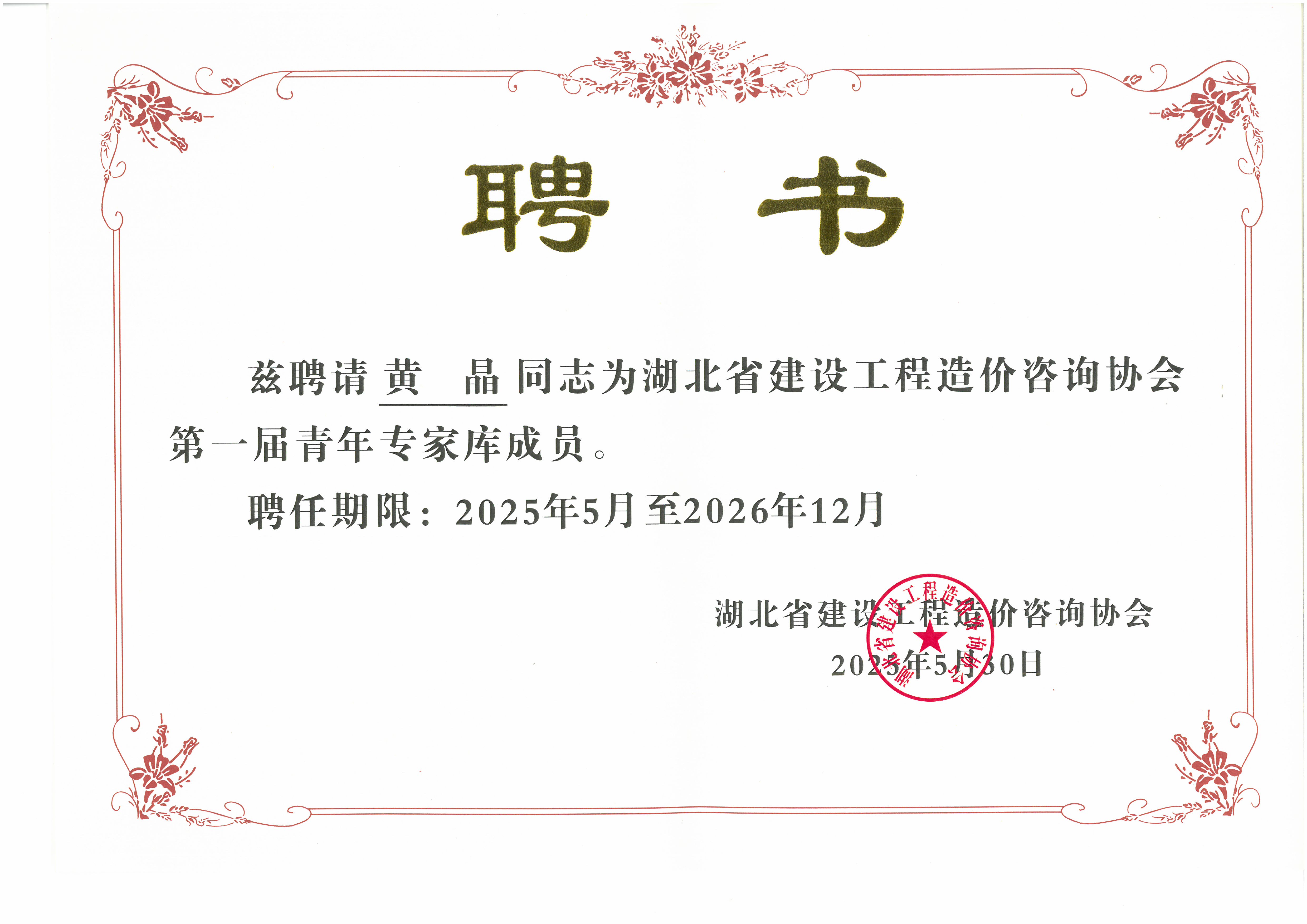 此次入選湖北省建設(shè)工程造價咨詢協(xié)會第一屆青年專家?guī)欤粌H是對黃晶個人專業(yè)能力的高度認可,更是對我司在工程造價領(lǐng)域?qū)I(yè)水平的肯定。這既是一份榮譽,更是一份責(zé)任。
